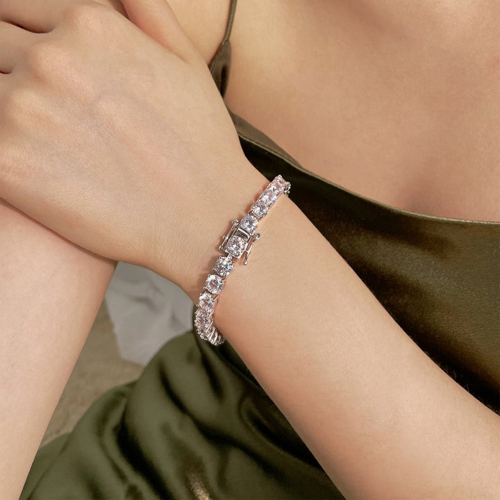 New Trending S925 Sterling Silver/Rhodium One Piece Jewelry Bracelet Chain For Women Luxury Zircon-6MM