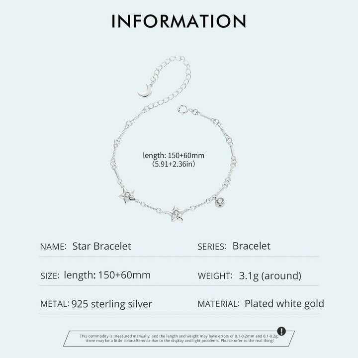 The small 3D star designs with a small moon tail chain symbolizes eternity, guardianship, depth, and yearning.