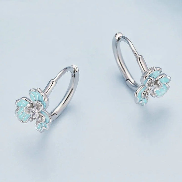 [SHINY]Blue Enamel Iris Ear Buckles Flower Hoop Earrings