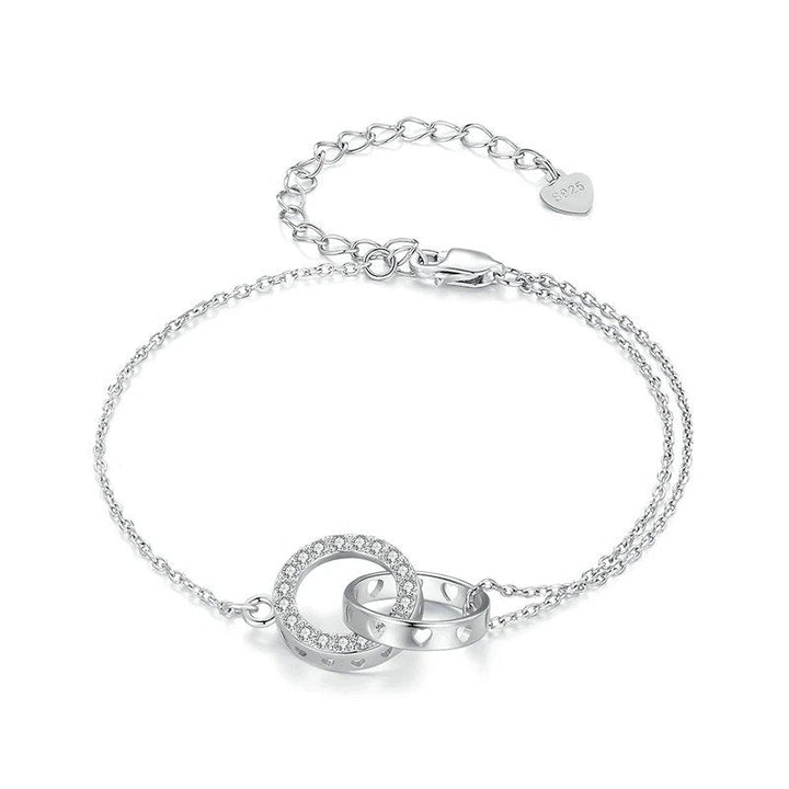 [SHINY]Silver Double Circle Bracelet Eternity Adjustable Chain Link Platinum Plated