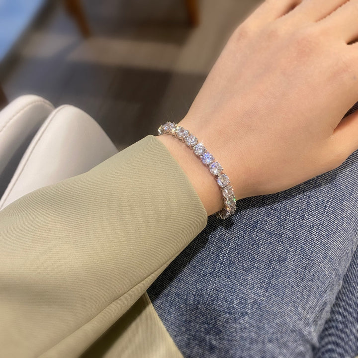 New Trending S925 Sterling Silver/Rhodium One Piece Jewelry Bracelet Chain For Women Luxury Zircon-6MM
