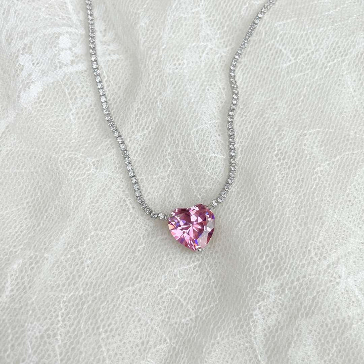 [SHINY]Versatile Colorful Sweet Heart-Shaped Tennis Necklace
