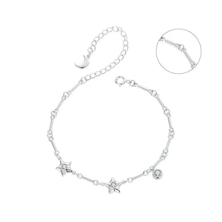 The small 3D star designs with a small moon tail chain symbolizes eternity, guardianship, depth, and yearning.