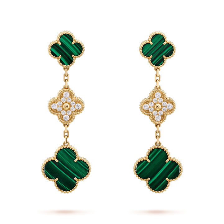 ˇShiny JewelryˇCLOVER EARRINGS GOLD MALACHITE DIAMOND 3 MOTIF