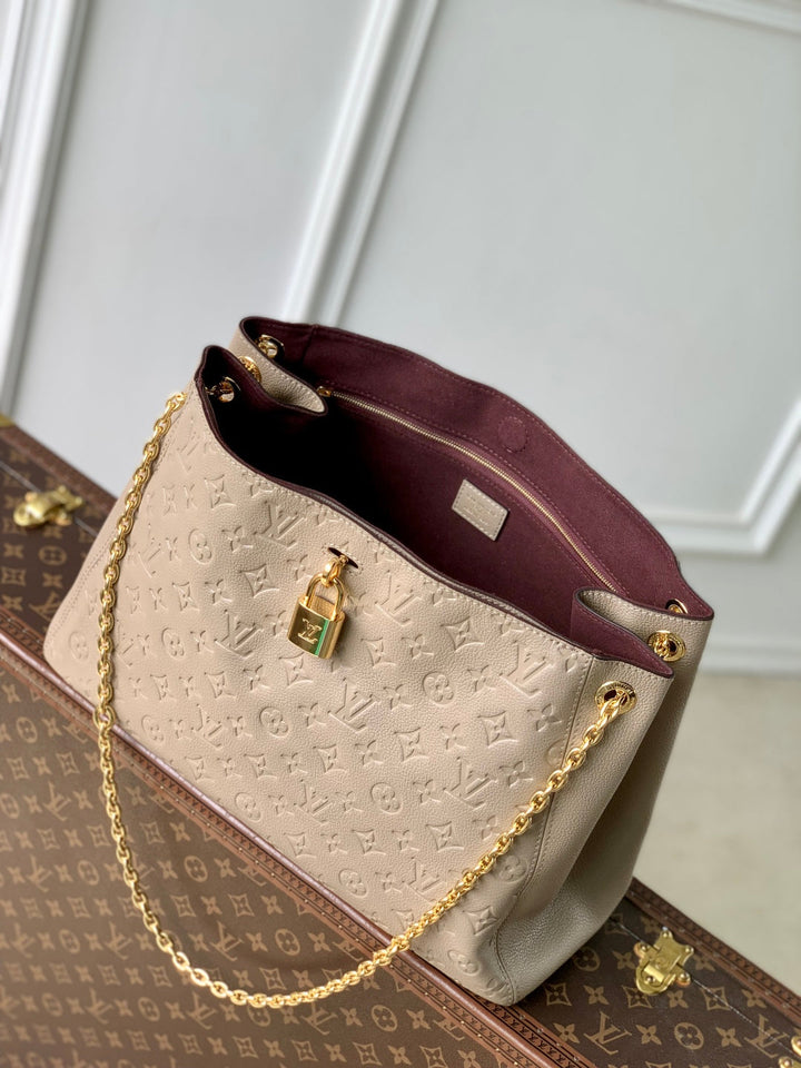 ANYTIME MM 42 IN TOURTERELLE GRAY MONOGRAM EMPREINTE CALFSKIN GOLD HARDWARE