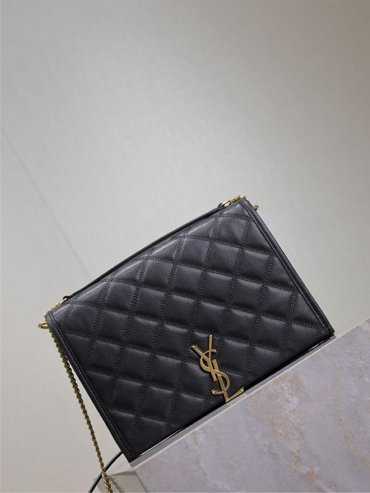 BECKY 26 IN BLACK QUILTED LAMBSKIN GOLD HARDWARE