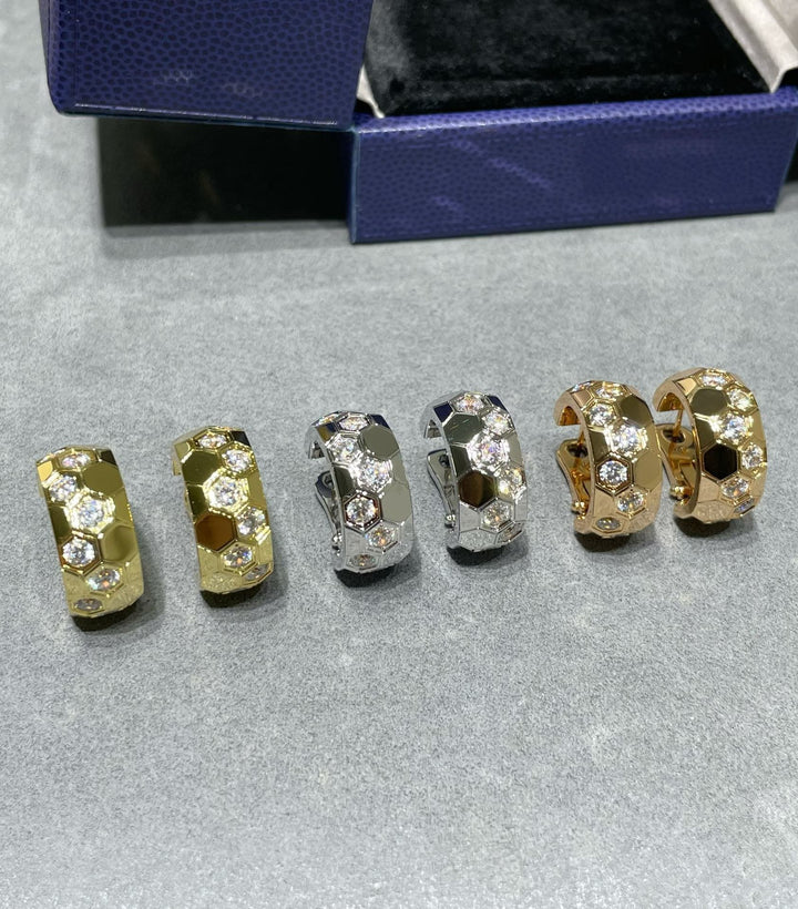 ˇShiny JewelryˇBEE LOVE DIAMOND HOOP EARRINGS