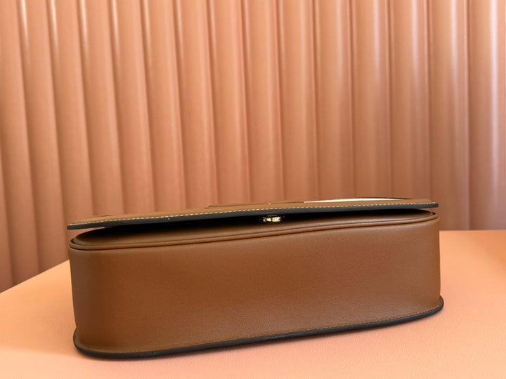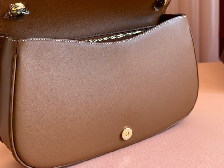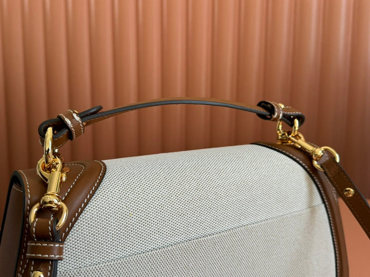 BLONDIE LARGE TOP HANDLE BAG 32 IN NATURAL COTTON LINEN CANVAS BROWN CALFSKIN