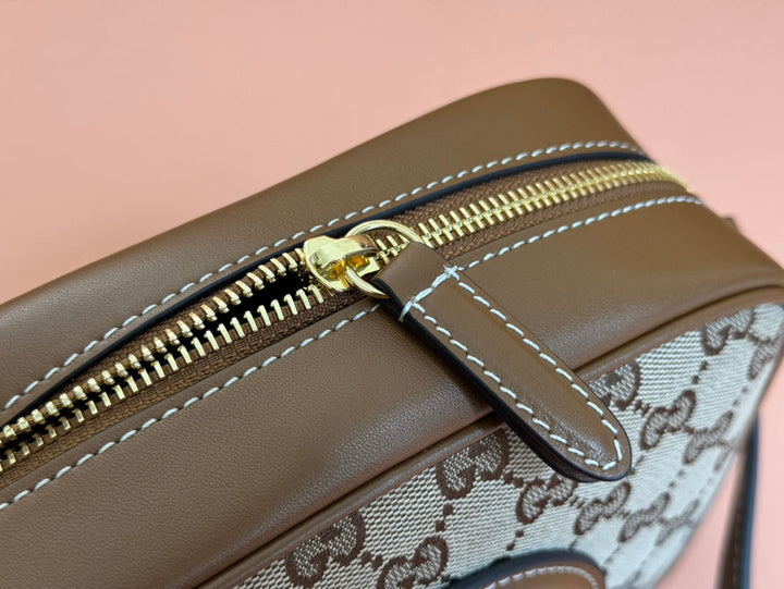 BLONDIE SMALL SHOULDER BAG 21 IN BEIGE AND DARK BROWN CANVAS BROWN CALFSKIN