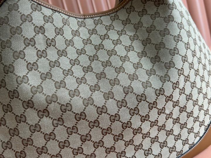 BODY MEDIUM SHOULDER BAD 49 IN BEIGE MONOGRAM CANVAS AND BROWN CALFSKIN GOLD HARDWARE