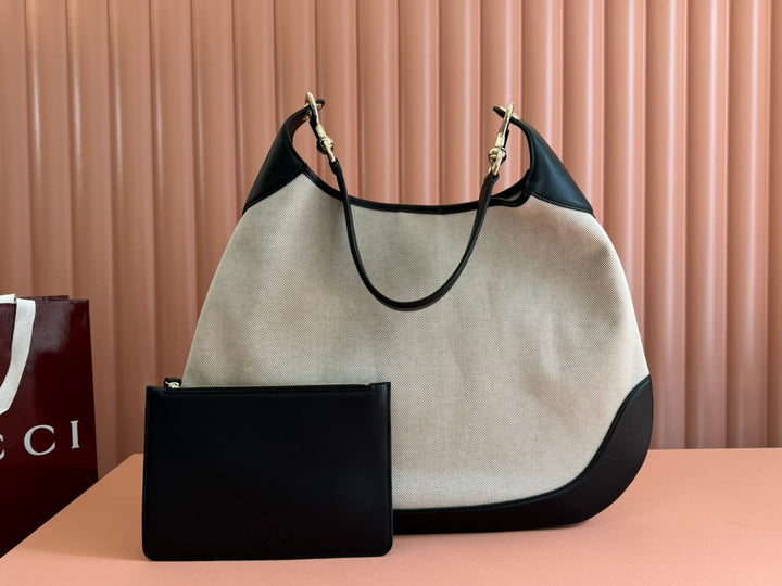 BODY MEDIUM SHOULDER BAD 49 IN NATURAL CANVAS AND BLACK CALFSKIN GOLD HARDWARE