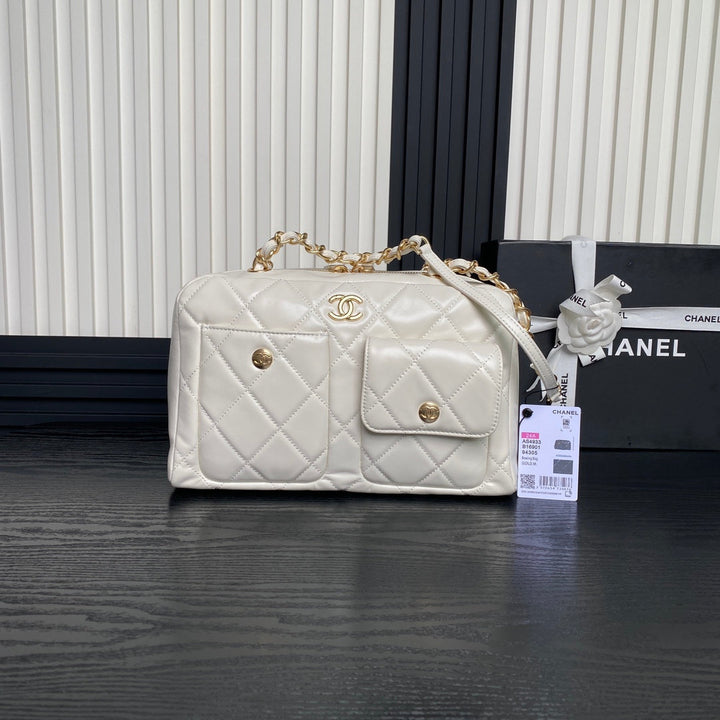 BOWLING BAG 29 IN OFF-WHITE CALFSKIN GOLD HARDWARE