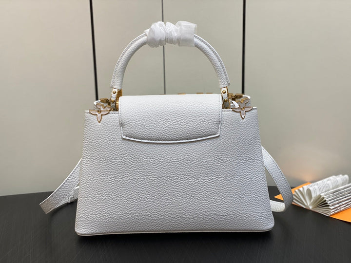 CAPUCINES MM 31 WHITE TAURILLON GOLD HARDWARE
