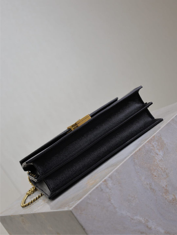 CASSANDRA CHAIN BAG 22 IN BLACK CAVIAR PATTERN CALFSKIN GOLD HARDWARE