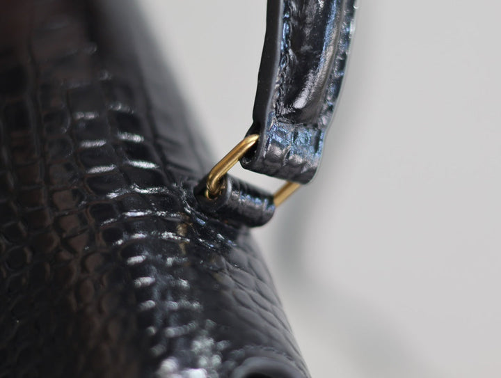 CASSANDRA TOP HANDLE BAG 24 IN BLACK CROCODILE-EMBOSSED GLOSSY CALFSKIN