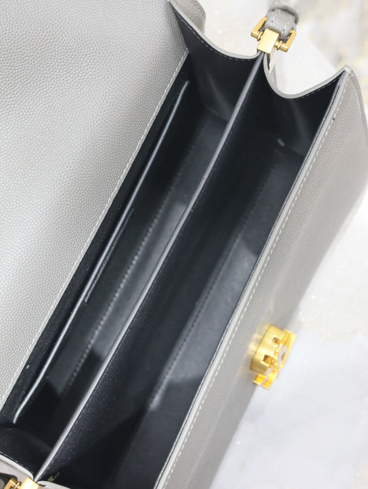 CASSANDRA TOP HANDLE BAG 24 IN GRAY CALFSKIN GOLD HARDWARE