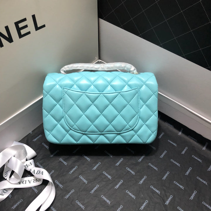 CC 20 CLASSIC SMALL DOUBLE FLAP BAG IN LIGHT BLUE CALFSKIN