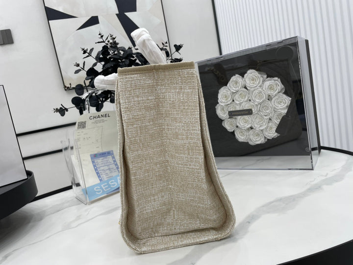 CC DEAUVILLE LARGE 38 TOTE BAG IN BEIGE CANVAS GOLD HARDWARE