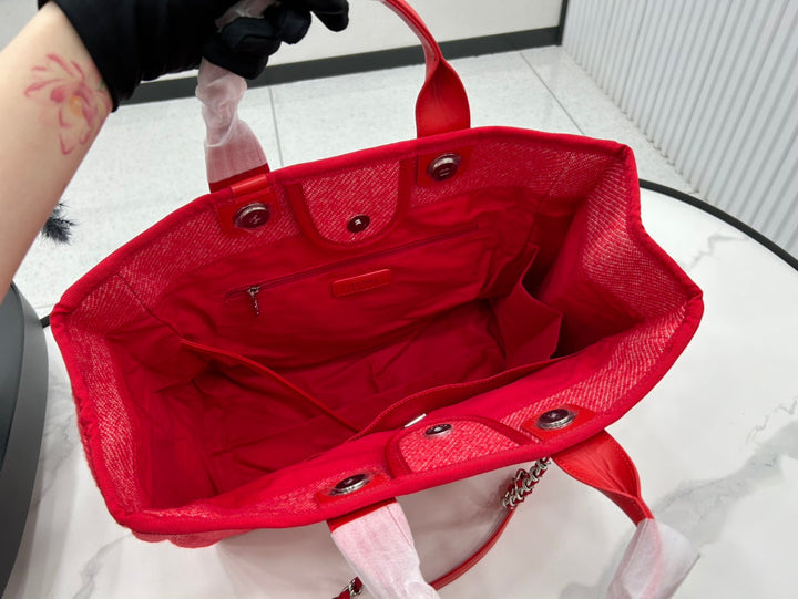 CC DEAUVILLE LARGE 38 TOTE BAG IN CHERRY RED CANVAS WITH WHITE LOGO