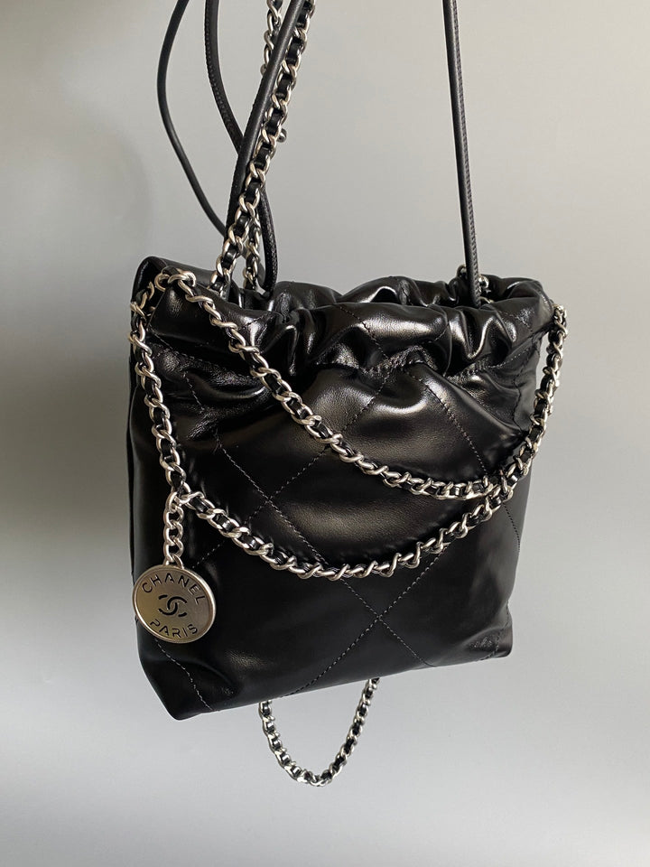 CC HOBO MINI 20CM BLACK LAMBSKIN SHW