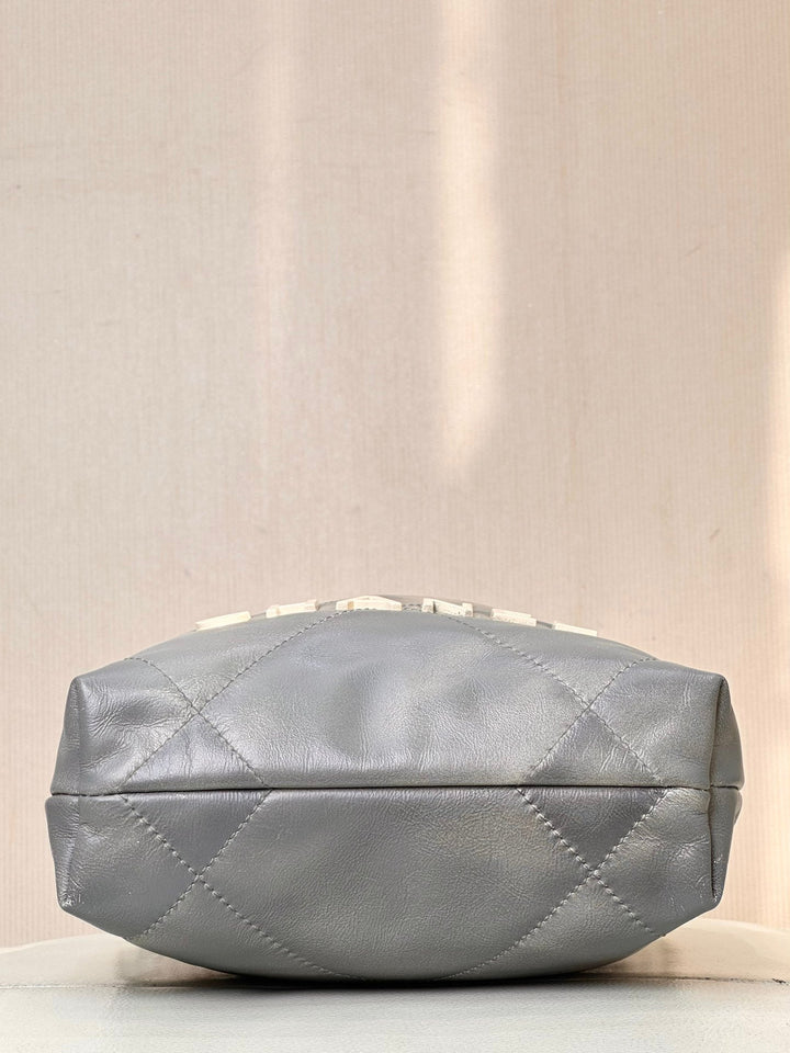 CC HOBO MINI 20CM WHITE GREY LAMBSKIN SILVER HARDWARE