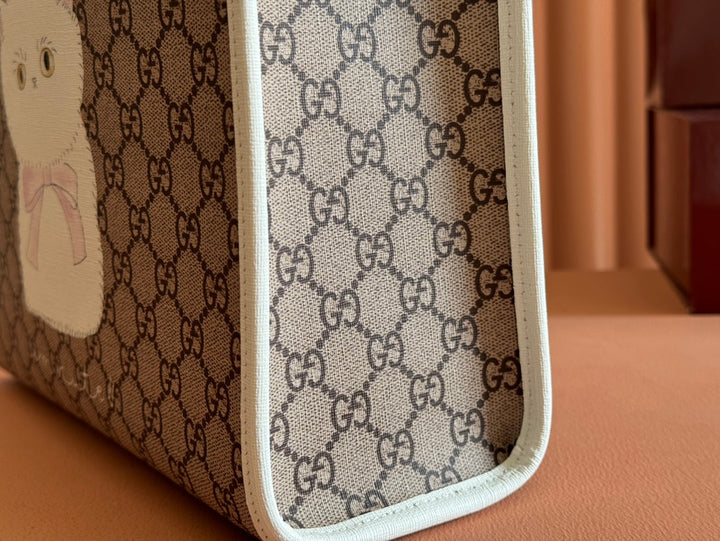 CHILDREN'S PRINTED BIG CAT TOTE BAG 28.5 IN BEIGE AND DARK BROWN GG CANVAS WHITE TRIM