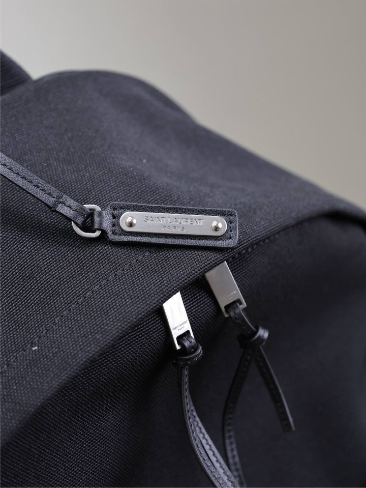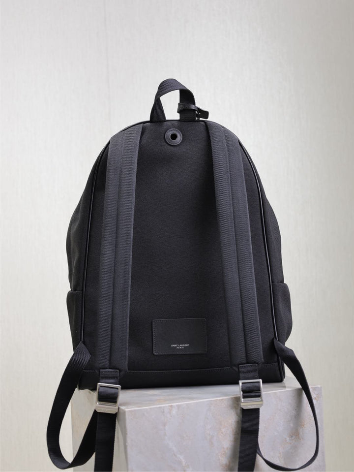 CITY BACKPACK 38 IN BLACK CANVAS WITH WHITE EMBROIDED LOGO