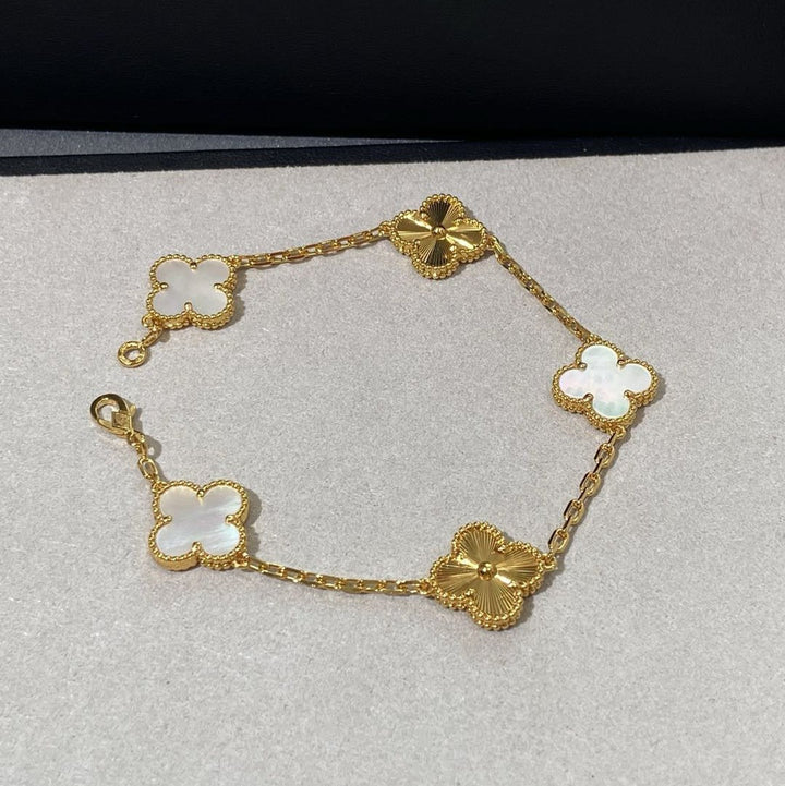 ˇShiny JewelryˇCLOVER 5 MOTIF WHITE MOP LASER BRACELET