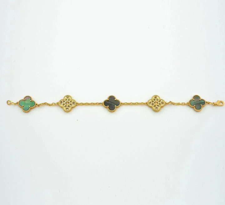 ˇShiny JewelryˇCLOVER 5 MOTIF GRAY MOP DIAMOND BRACELET