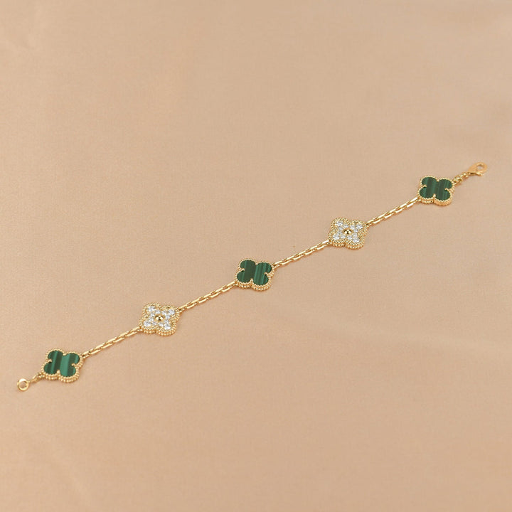 ˇShiny JewelryˇCLOVER 5 MOTIF MALACHITE DIAMOND BRACELET