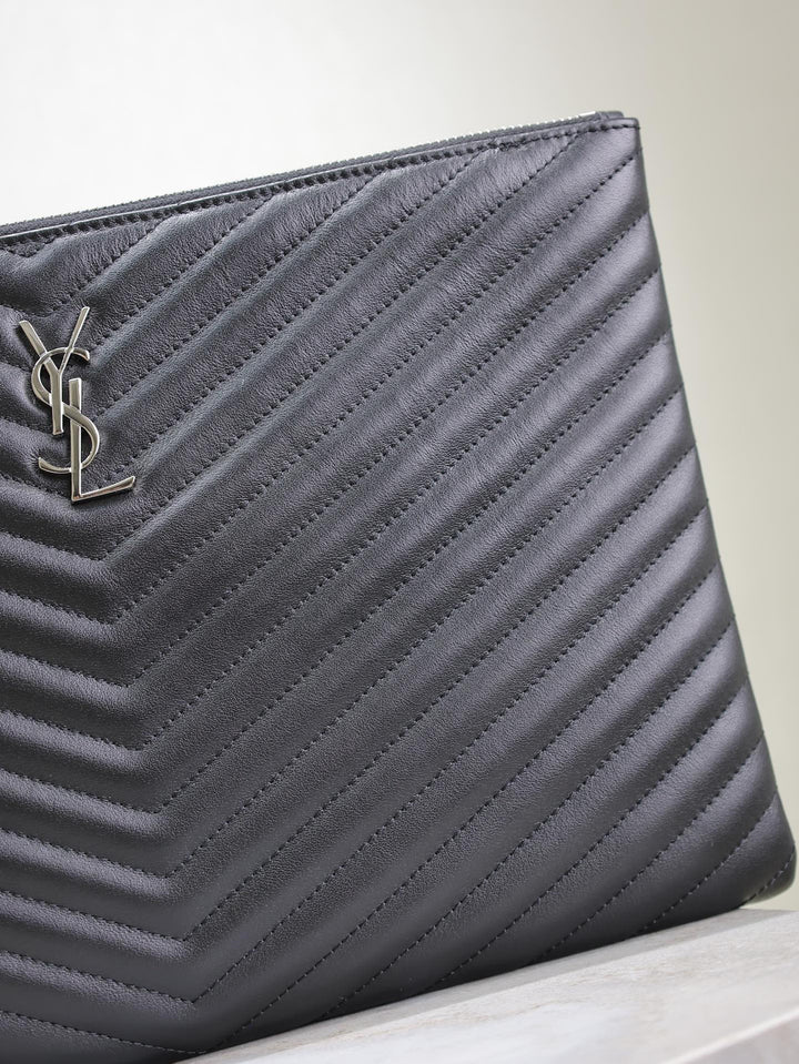CLUTCH 36 IN BLACK QUILTED CALFSKIN SILVER BUCKLE