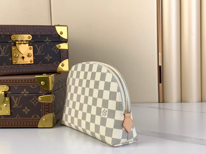 COSMETIC POUCH 22 IN WHITE GRAY DAMIER AZUR CANVAS