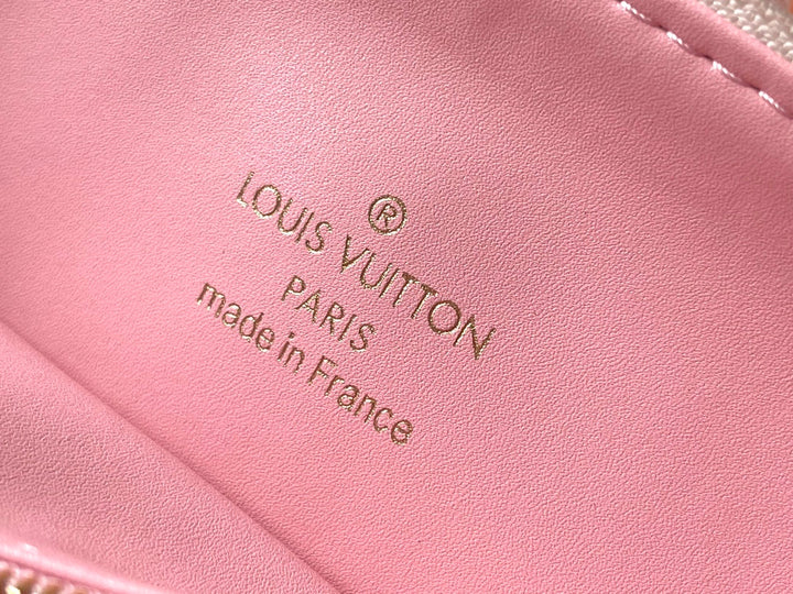 COUSSIN PM 26 IN CREAM RED MONOGRAM EMBOSSED LAMBSKIN GOLD HARDWARE