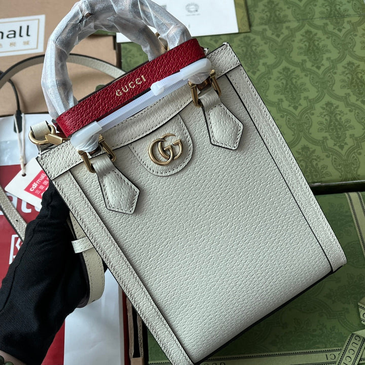 DIANA TOTE BAG 19 IN WHITE LAMBSKIN WITH BAMBOO HANDLE