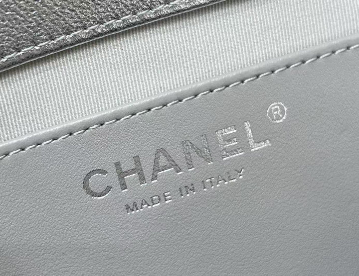 DRAWSTRING BUCKET BACKPACK 24 IN SILVER-TONE LAMBSKIN SILVER HARDWARE