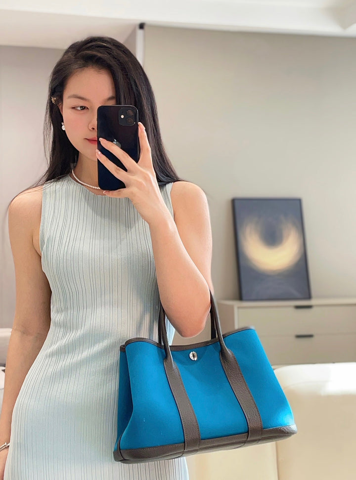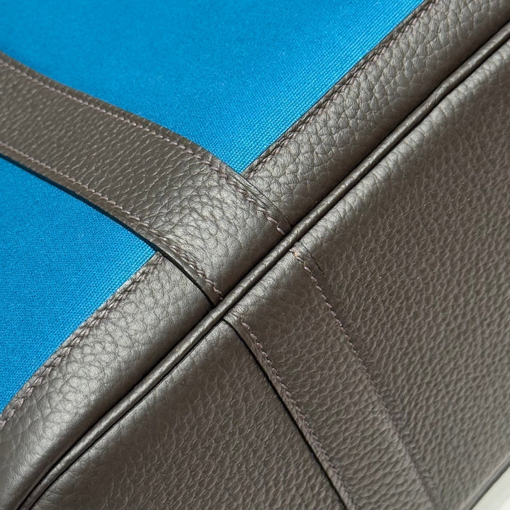 GARDEN PARTY 30CM IN BLUE TOILETS COTTON CANVAS AND BLACK CALFSKIN