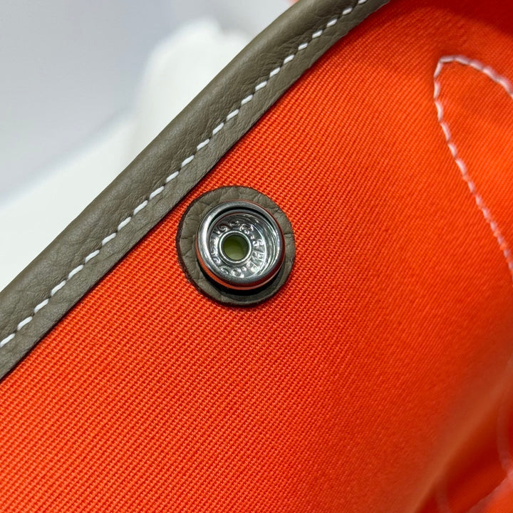 GARDEN PARTY 30CM IN ORANGE MINIMUM TOILETS COTTON CANVAS AND BROWN CALFSKIN