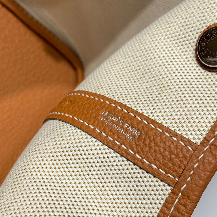 GARDEN PARTY 36 IN MULTICOLOR TOILE H CANVAS GOLD CALFSKIN ABSTRACT GEOMETRIC BLOCKS PRINT