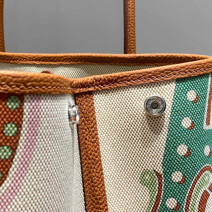 GARDEN PARTY 36 IN MULTICOLOR TOILE H CANVAS GOLD CALFSKIN CIRCUS TYPOGRAPHY PRINT