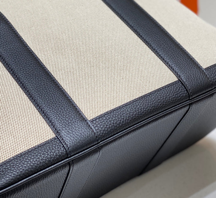 GARDEN PARTY 36CM IN WHITE TOILETS COTTON CANVAS AND BLACK CALFSKIN