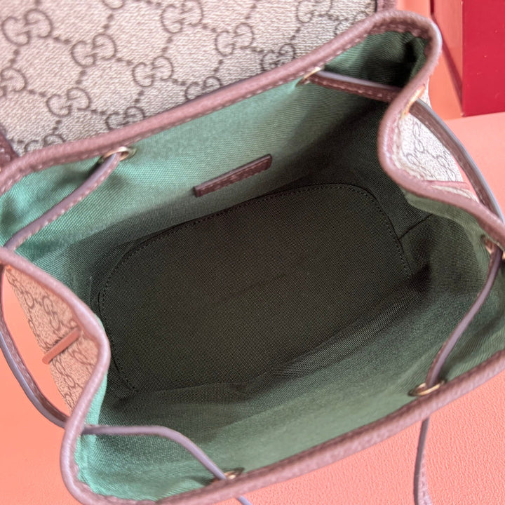 GG 25S OPHIDIA SMALL BACKPACK 20 IN BEIGE AND EBONY CALFSKIN