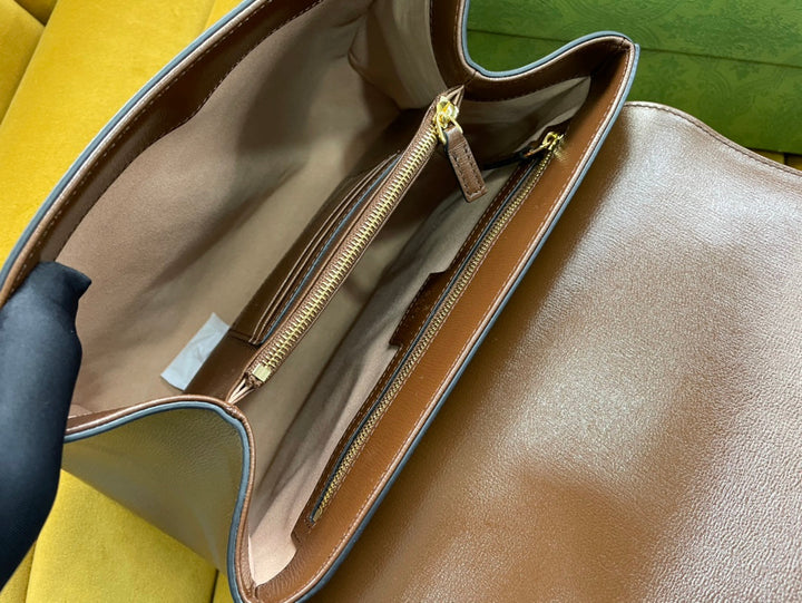 GG HORSEBIT 1955 SMALL 29 BAG BEIGE CANVAS AND LIGHT BROWN CALFSKIN