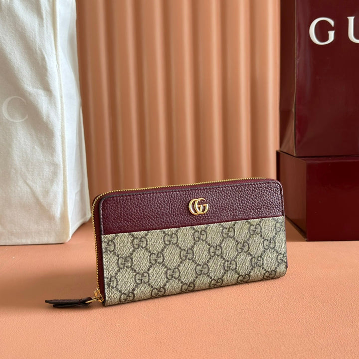 GG MARMONT 19 LONG WALLET IN RED AND BEIGE CALFSKIN