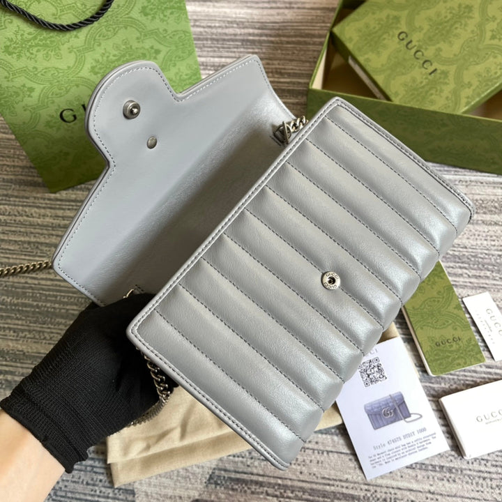 GG MARMONT MINI 20 SHOULDER BAG IN GREY CALFSKIN