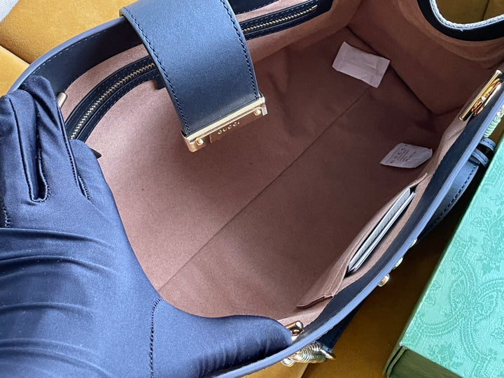 GG PADLOCK LARGE 35 SHOULDER BAG BEIGE CANVAS AND BLACK CALFSKIN