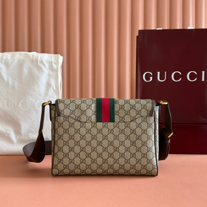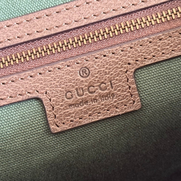 GUCCI 25S OPHIDIA SMALL BAG 28 IN BEIGE CANVAS AND BROWN CALFSKIN