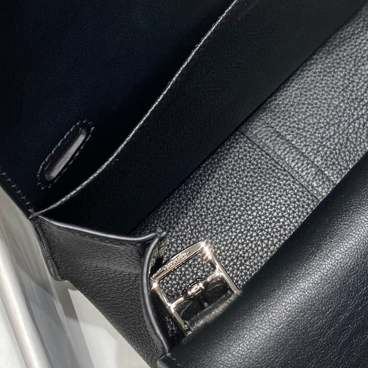HALZAN 25 HANDLE BAG IN BLACK GRAINED CALFSKIN SILVER HARDWARE