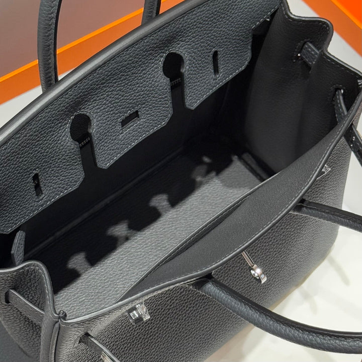 HERMES 25S MEDIUM BIRKIN 25 IN CHARCOAL GRAY CALFSKIN SILVER HARDWARE