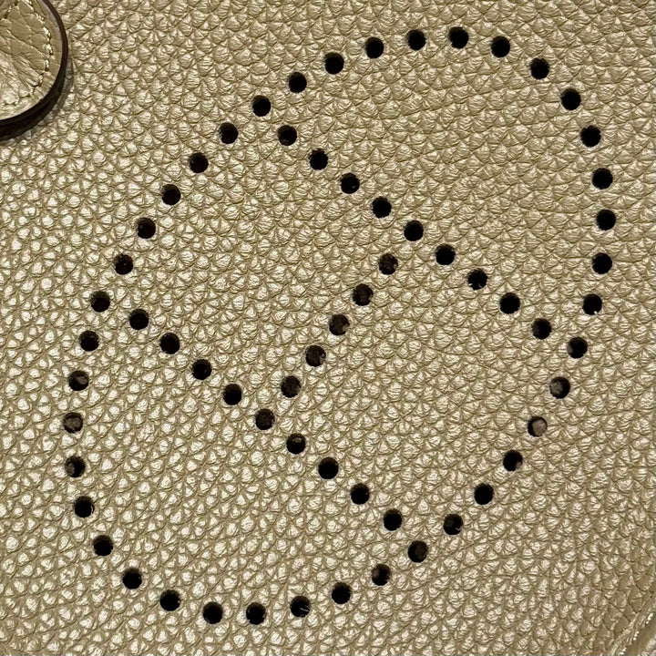 HERMES 25S MINI EVELYNE 18 IN BEIGE MARFA PATTERNED STRAP CALFSKIN SILVER HARDWARE