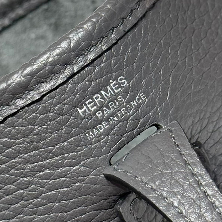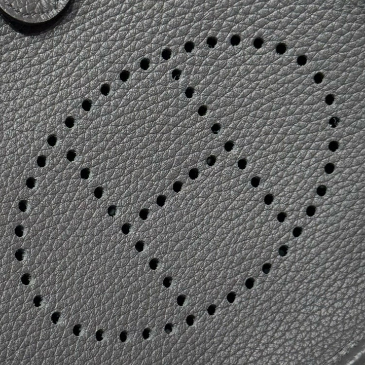 HERMES 25S MINI EVELYNE 18 IN CHARCOAL GRAY PATTERNED STRAP CALFSKIN SILVER HARDWARE